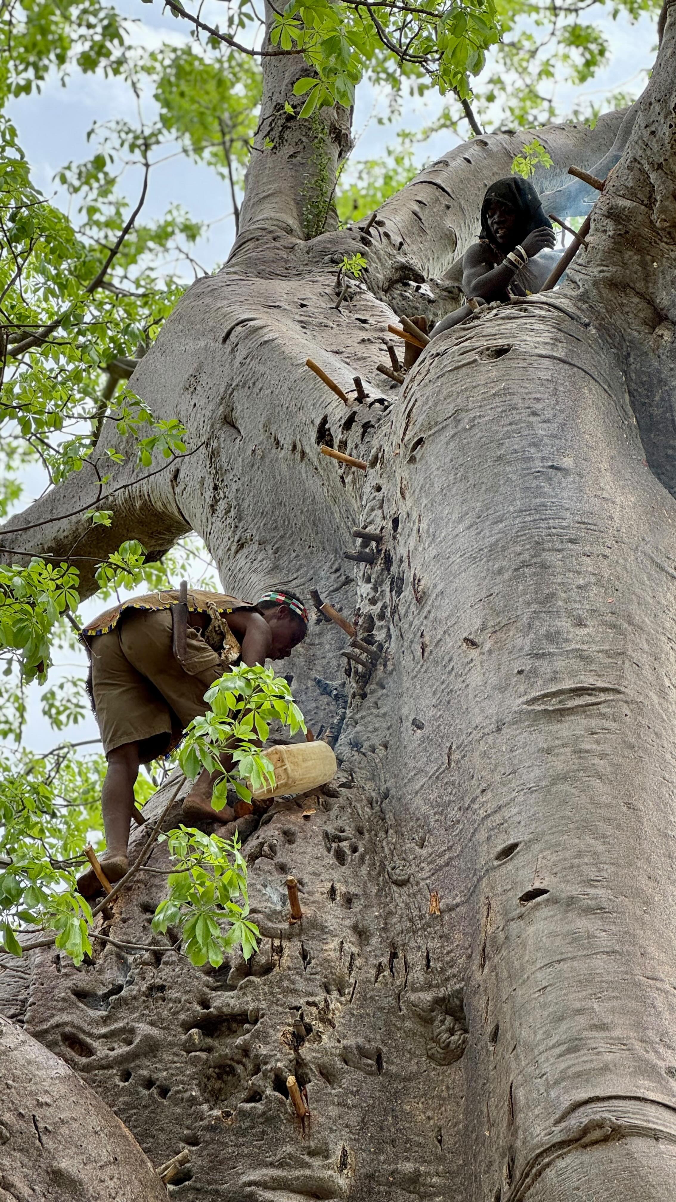 “Me-le-ka” in the Hadza language is an old, hollowed out baobab tree that serves as a home or shelter.